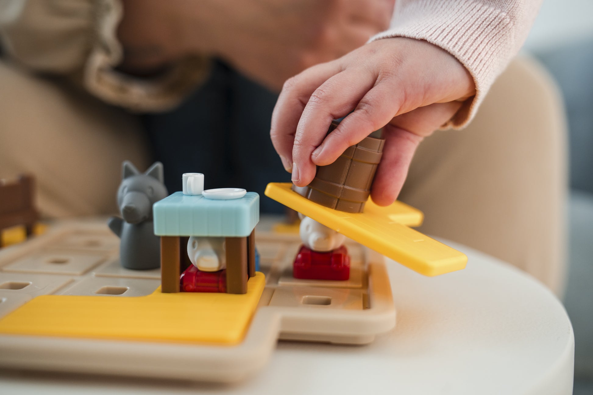 Zorg ervoor dat de 7 kleine geitjes zich op tijd kunnen verstoppen vooraleer de wolf ze vindt. Maar let goed op, want niet elk geitje past onder elk meubel.