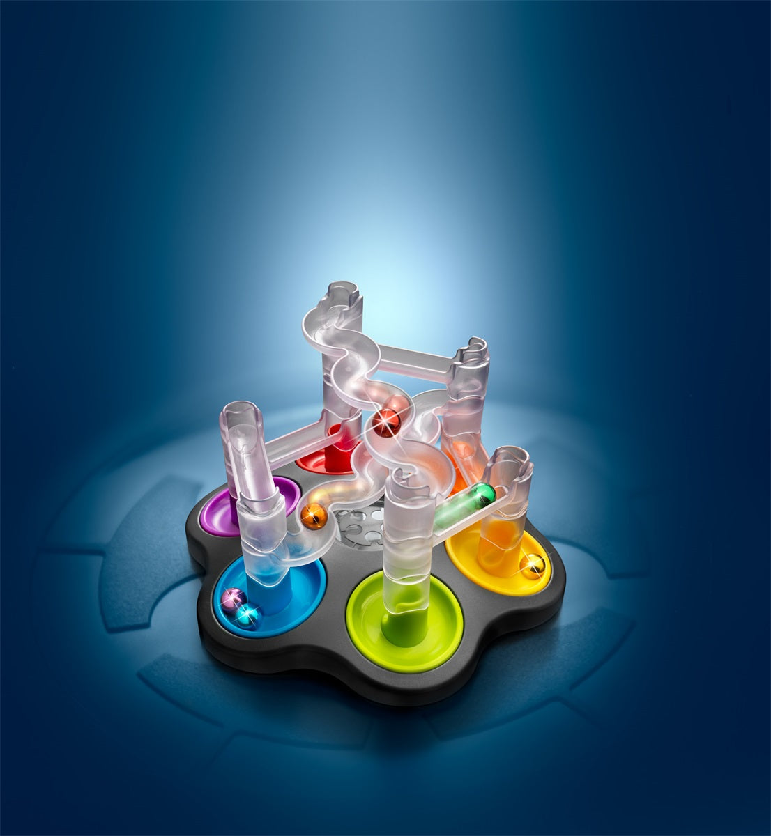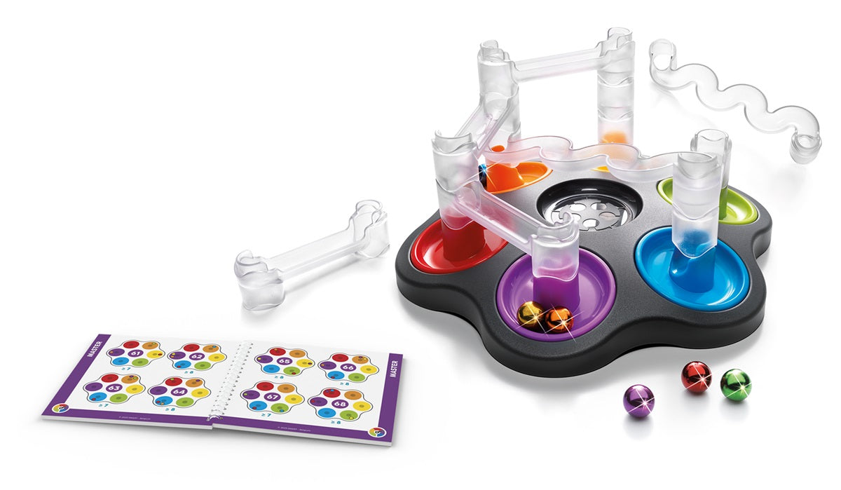 Het doel is eenvoudig maar uitdagend: bouw een knikkerbaan met verschillende paden en leid de knikkers naar hun aangewezen doelbasis.