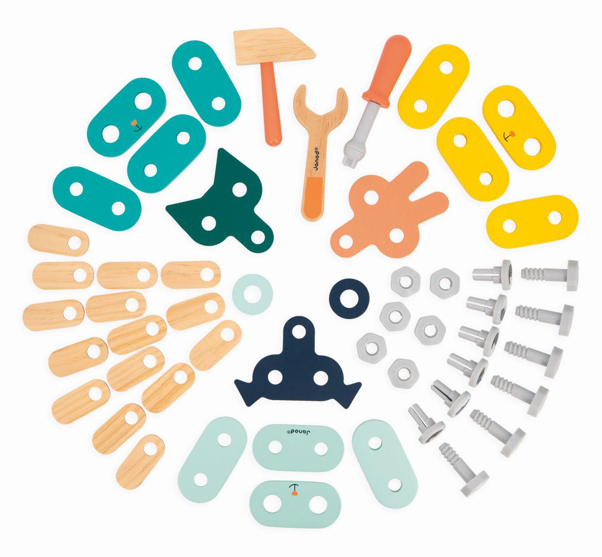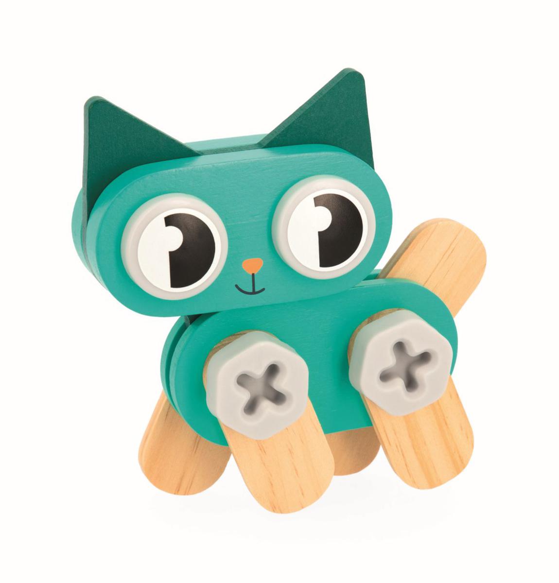 3 leuke kleine dieren om zelf in elkaar te zetten! Met 3 stuks gereedschap, 32 houten stukken en 18 kunststof elementen (schroeven, moeren, inzetstukken) kan uw kind zijn gewenste metgezel tot leven wekken. De 3 dieren kunnen tevens tegelijkertijd worden gemaakt. Voor elk dier is er een modelkaart meegeleverd.