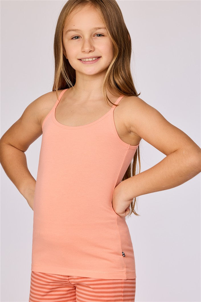 Effen oranje/roze onderhemd in katoen met spaghettibandjes