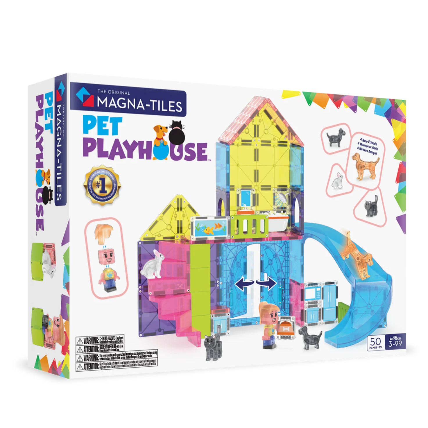 Stap in een wereld waar huisdieren centraal staan en creativiteit geen grenzen kent! Met de MAGNA-TILES Pet Playhouse kunnen kinderen hun eigen ultieme dierenparadijs bouwen voor een speelse puppy, nieuwsgierige kat, vrolijk konijn en hun avontuurlijke hondenmaatje. Open de dubbele deuren en ontdek een speelhuis waar huisdieren op meubels klimmen, van de gloednieuwe glijbaan roetsjen en een ruimte verkennen vol eindeloze fantasie en mogelijkheden. De Mix and Match Dierenverzorger staat klaar om te helpen met de verzorging van de dieren, terwijl microMAGS kubussen het mogelijk maken om meubels of kleine bouwwerken te creëren waar de huisdieren doorheen kunnen spelen. Voeg hekken en poorten toe voor speelse afbakeningen – of om die ondeugende puppy uit de keuken te houden! Pet Playhouse biedt de perfecte combinatie van fantasievol bouwen en plezier. Klaar om jouw verbeelding los te laten? Laten we spelen!