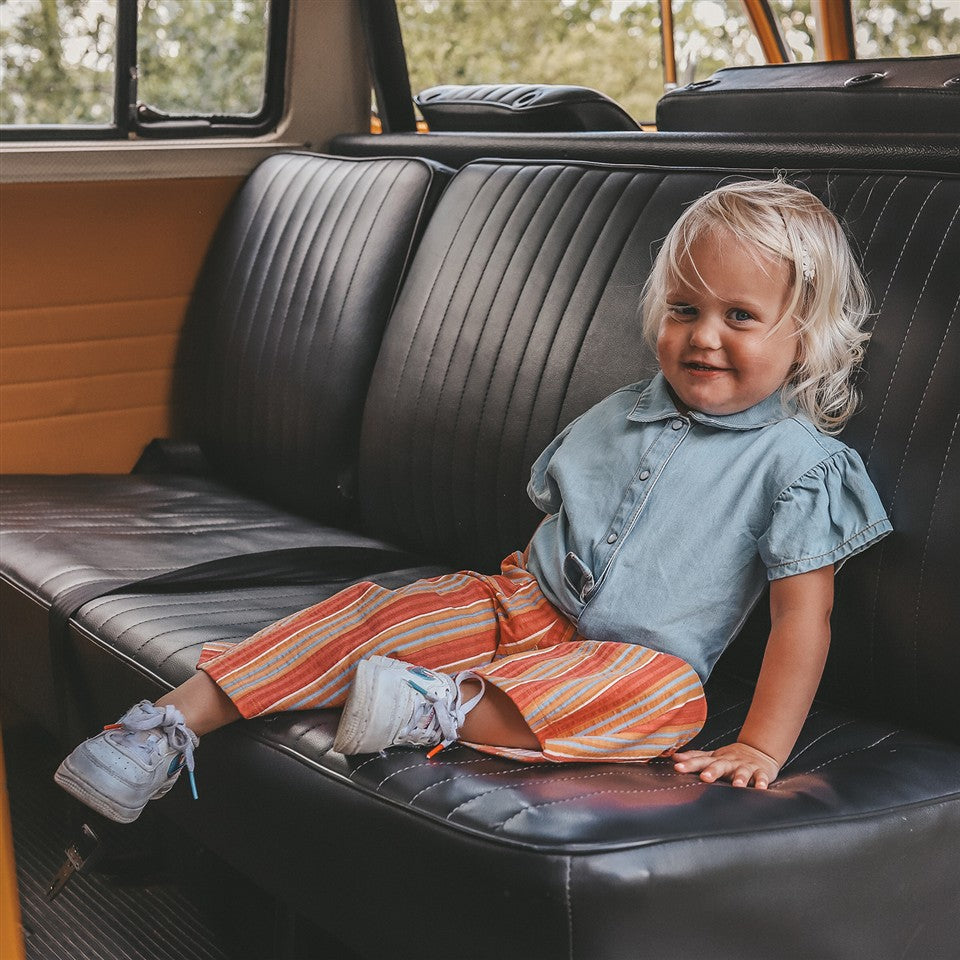 Lichtblauwe blouse met korte mouwen in soepele denimstof.