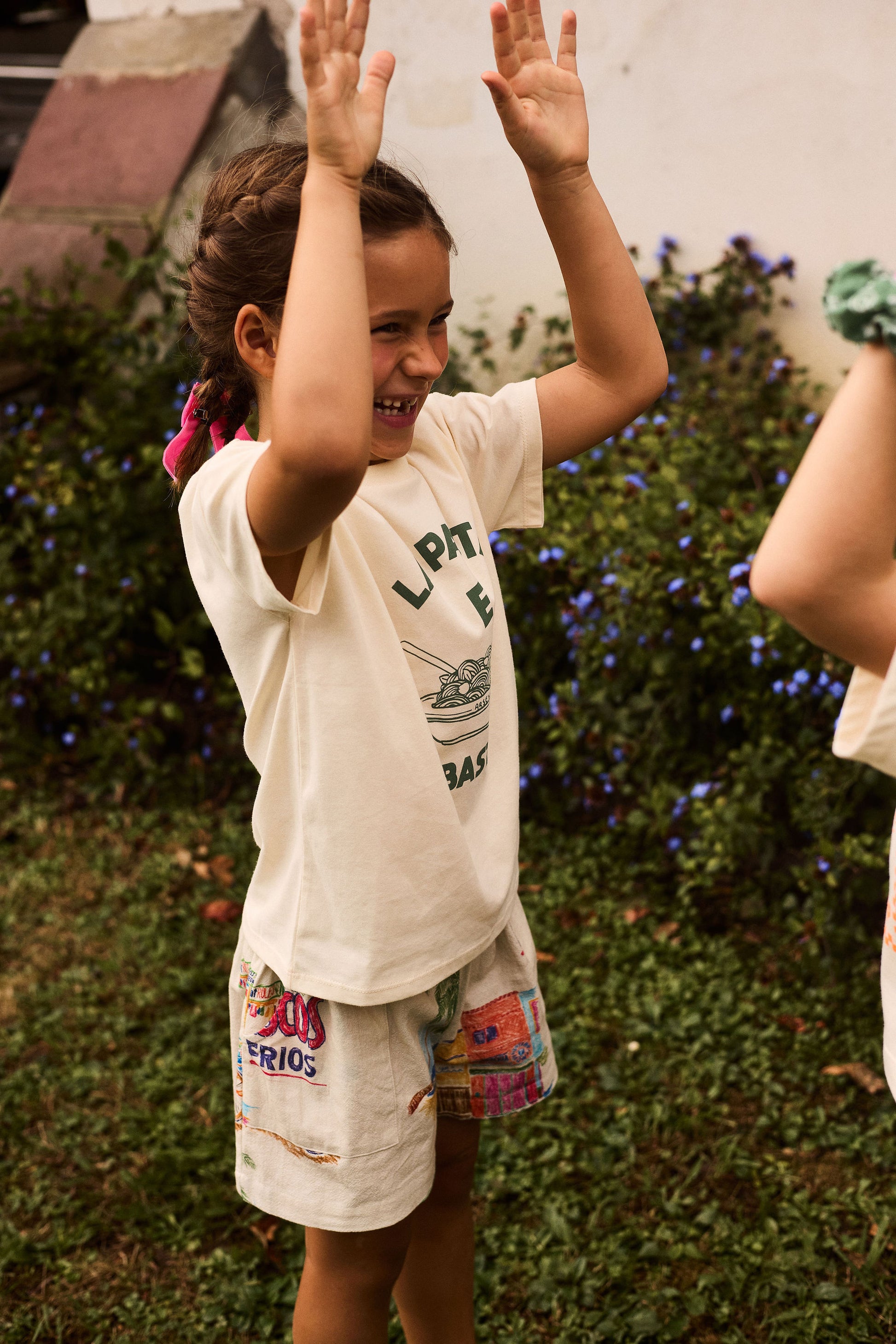 Ecru short met zomerse all-over print.