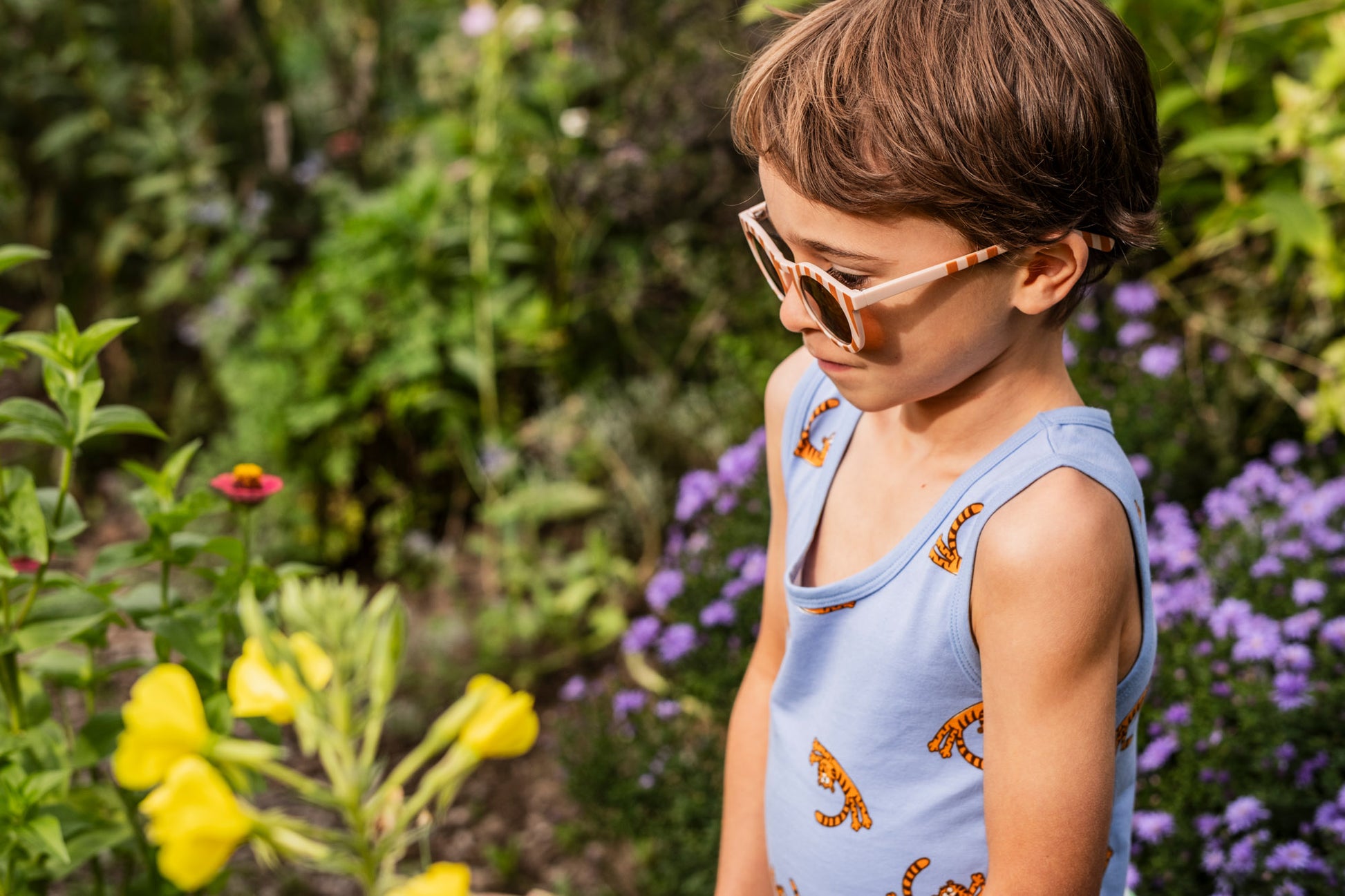 Lichtblauw onderhemd in katoen met stoere tijger print.