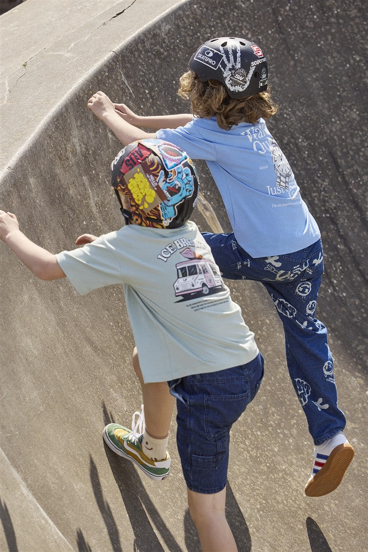 Grijs/groene tshirt met ijscokar vooraan en op de rugzijde en tekst "Ice Breaker"
